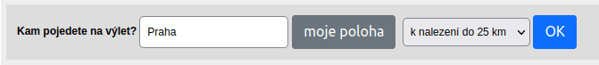 Do vyhledávacího pole můžete napsat místo, kam se chystáte na výlet, aplikace tento text přeloží na GPS souřadnice a zobrazí místa, které mají své turistické odznaky.
